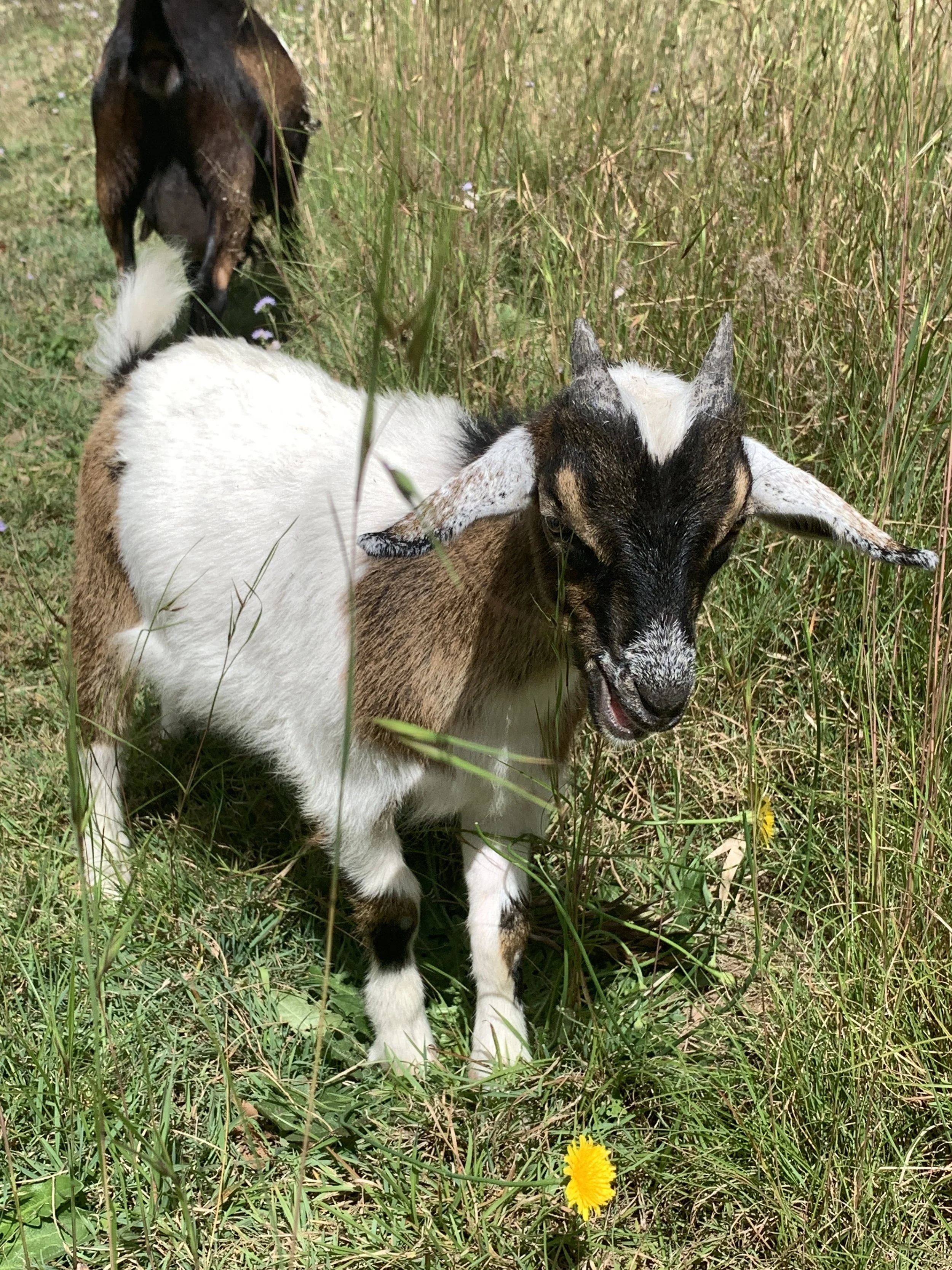 He will be wethered and available as a companion to one of our other kids, or someone in your existing herd.