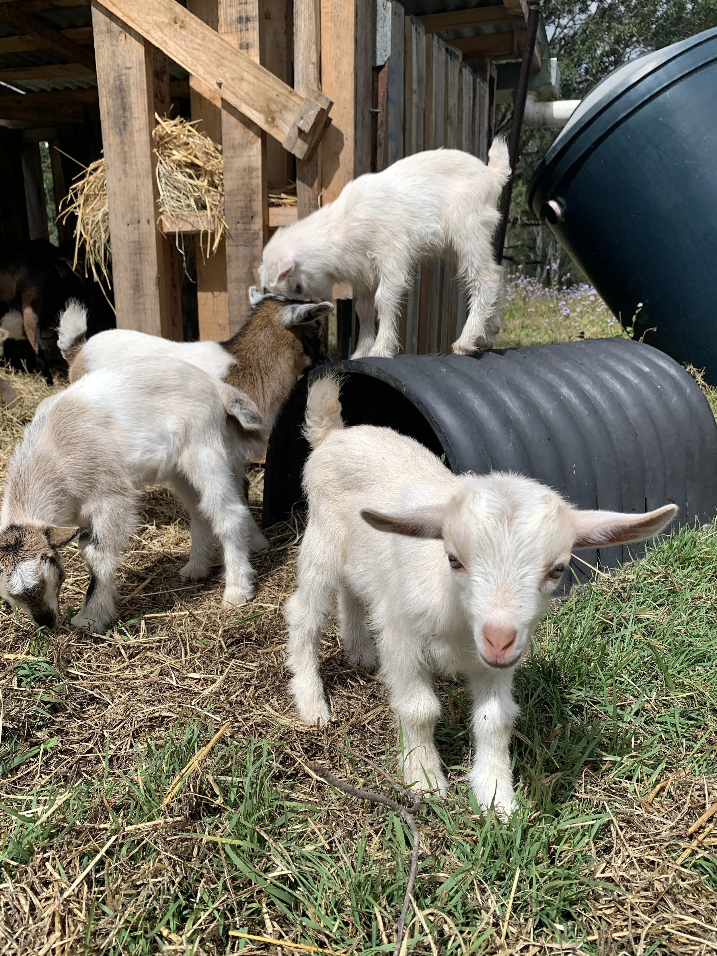 A triple dose of 84% Nigerian Dwarf kids landed thanks to Gidget on the 21st of April. They are available now.